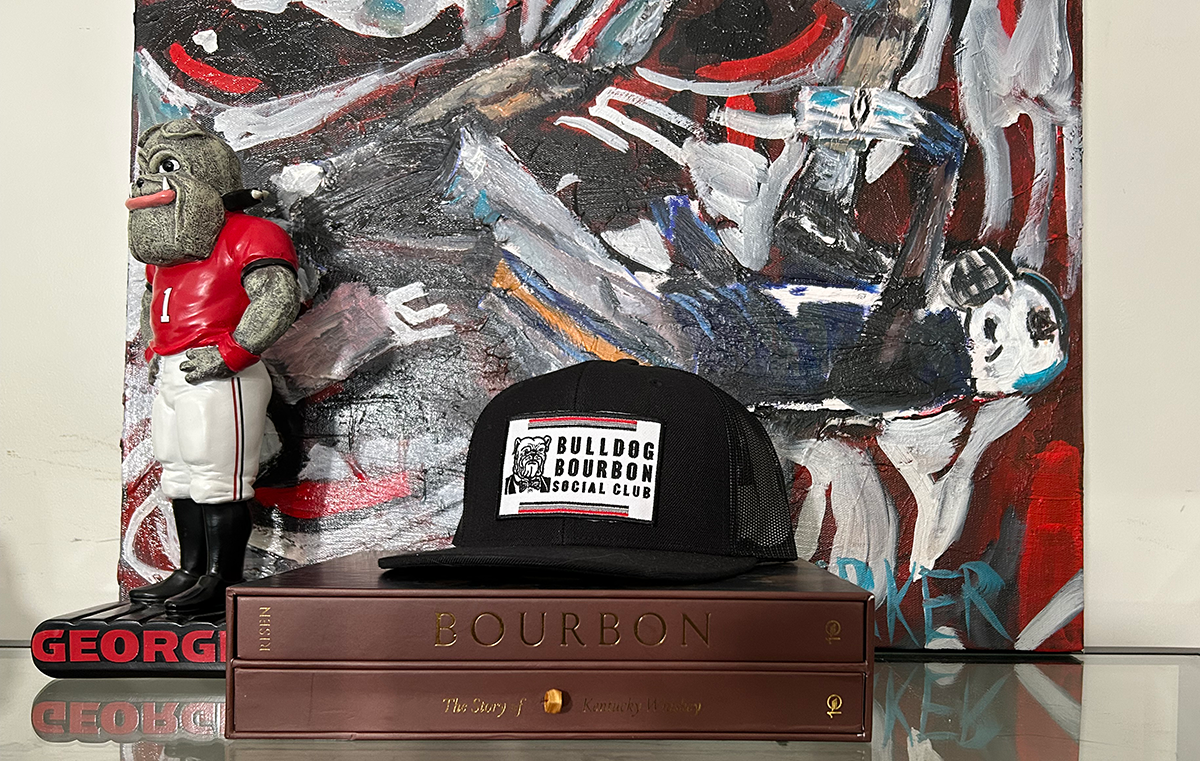 Wool Blend Flat Bill Trucker Cap with the Bulldog Bourbon Social Club patch. Proceeds benefit Bulldogs Battling Breast Cancer.